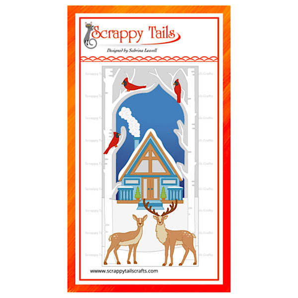 The tunnel has an intricate Birch Tree style front page with two inlaid single trunk Birch Trees (a left and a right winged tree). You can inlay those two Birch trees in a different color card stock to create additional dimension and texture. Consider to use some specialty cardstocks to really pull the eyes into the tree trunks. That way the Birch Trees really frame in the center cut out and draw your eye into the scene that is building up within the tunnel. A cool woodsy cabin/ Scandinavian style ski chalet with many pretty snowy details and window/door detailing is also included in this set. There are also two deer included in the set to create a serene and woodsy outdoor winter scene in the forest- it includes one female and one male deer. Check out the various add-on sets that come with our Birch Tree tunnel, too. The Birch Tree tunnel is a great starting point for more masculine and traditional Winter cards or cards for outdoor enthusiasts. A few small birds are also included and can be added onto the spare branches of the Birch Trees. You will enjoy to make these beautiful large tunnel cards that (when folded flat) will fit into a standard A7 (5x7 inch) envelope for easy mailing. Some of these dies may also further extend on last year’s trifold card collection by providing you with additional dies/side walls for your favorite trifold design.
